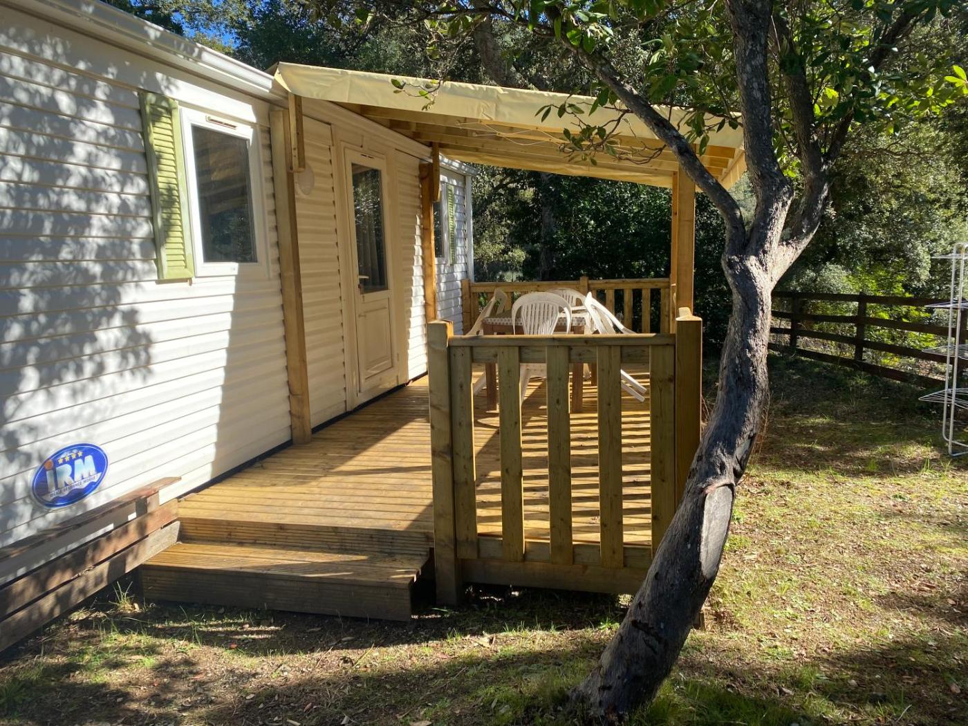 Mobile Home. Featuring a private entrance, this air-conditioned mobile home comprises 1 living room, 2 separate bedrooms and 1 bathroom with a shower. Guests will find a stovetop, a refrigerator, kitchenware and a microwave in the well-fitted kitchen. The mobile home also provides guests with a barbecue. Boasting a terrace with lake views, this mobile home also provides soundproof walls and a TV. The unit offers 4 beds. ;