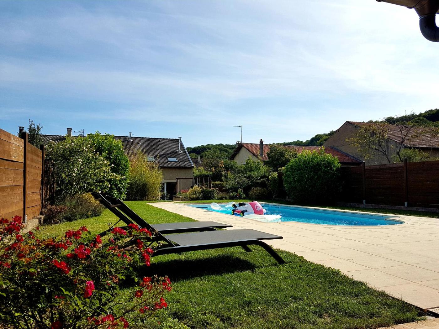 Chambre Double. Guests will have a special experience as the double room offers a pool with a view. In the well-equipped kitchenette, guests will find a refrigerator, kitchenware, a microwave and a tea and coffee maker. The spacious double room provides a private entrance, soundproof walls, a terrace with garden views as well as a private bathroom featuring a walk-in shower. The unit offers 2 beds.